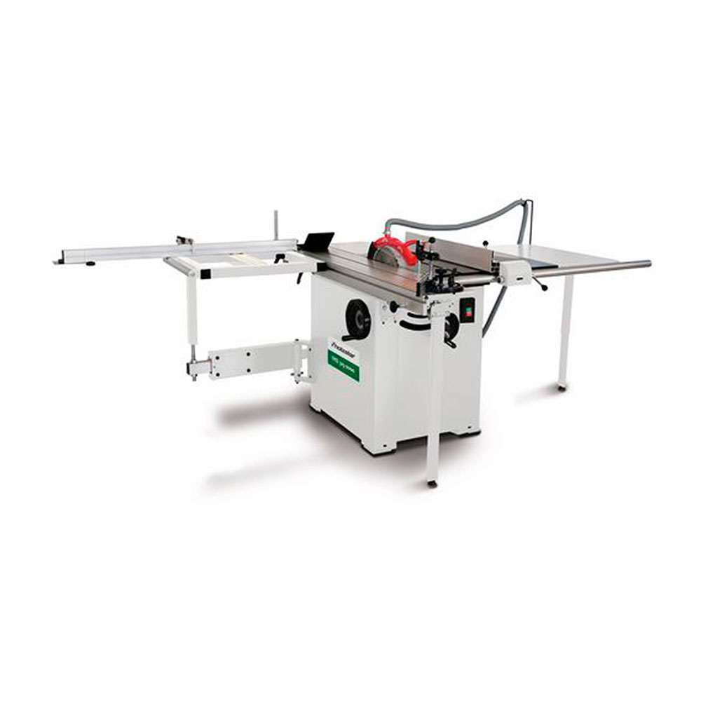 Sierra circular con carro deslizante y disco incisor.