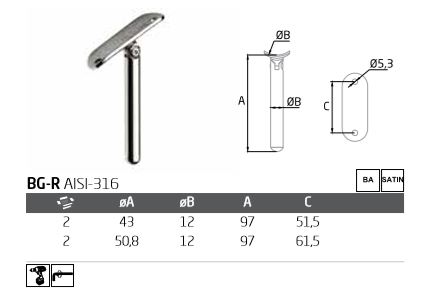 Soporte pasamanos redondo (componente) Fijo de acero inoxidable