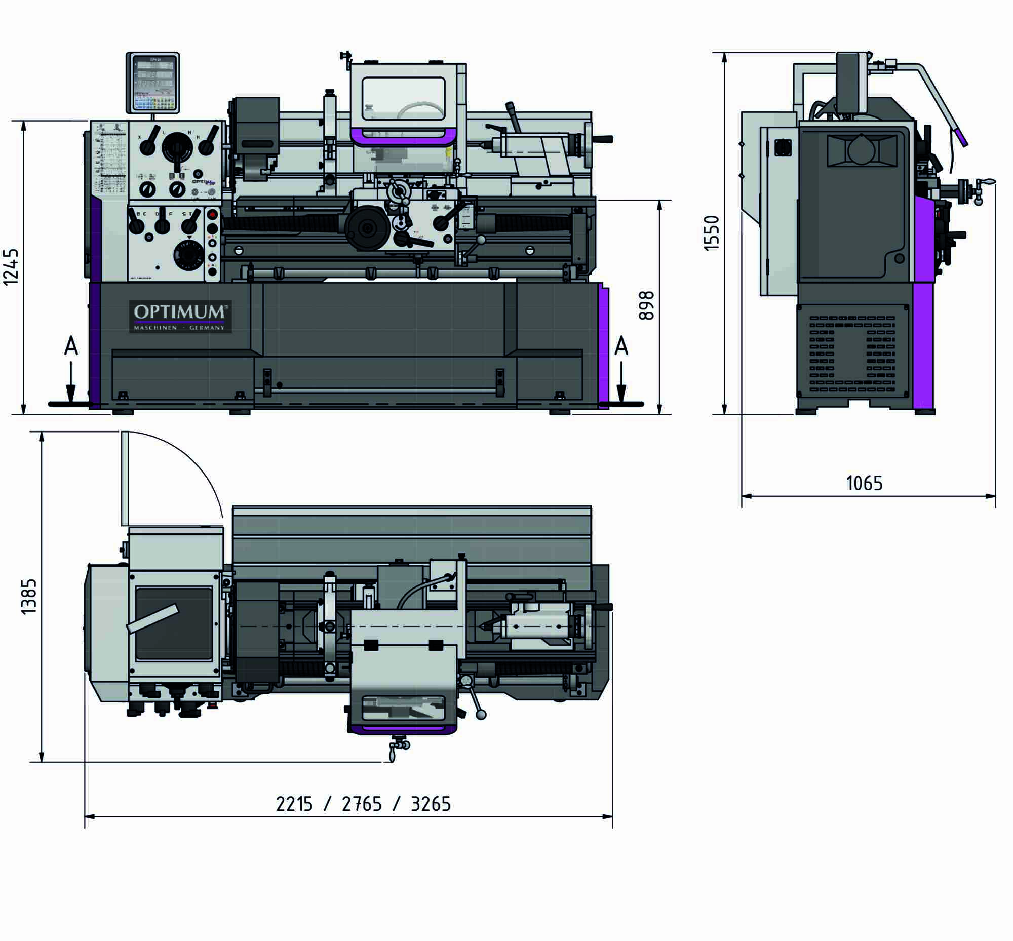 - Luneta fija paso Ø 15-105 mm, luneta móvil Ø 10-65 mm, lámpara LED, casquillo reducción MT 6 / MT 4, porta-útil cuádruple, contrapunto MT 4 con tope de posición y ajuste fino, herramientas de funcionamiento, carga inicial con aceite de alta calidad.